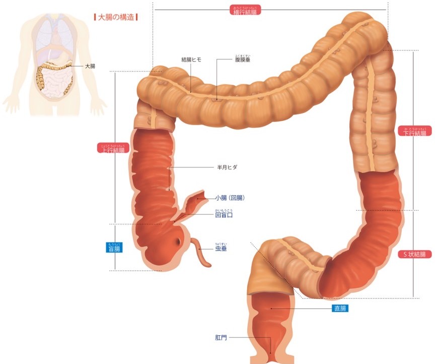 内視鏡下ポリープ切除(ポリペクトミー)大腸はおおよそ1.5m~2mあります。